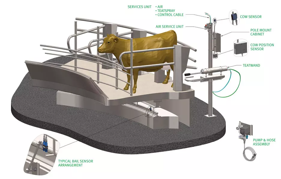 Designed to work equally well as a Pre-spray or Post-Spray solution. A Laser Position Sensor, Twin Nozzles and a Fully-Adjustable Touchscreen Control System allows excellent teat spray coverage with efficient usage of expensive teat sprays.