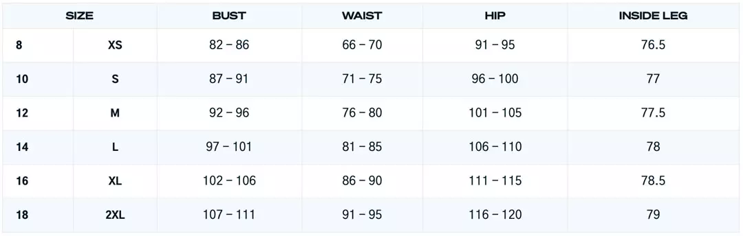 - Hip – With feet together measure around the body 20cm below the natural waistline.